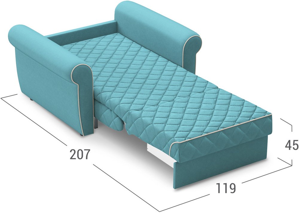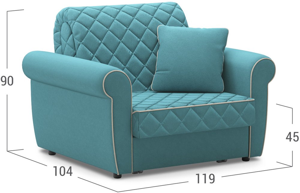 Великолепное кресло, цвет бирюзовый очень приятный, освежающий интерьер! Раскладывающийся механизм удобный, лёгкий, комфортно использовать для сна. Настоятельно рекомендую эту модель!