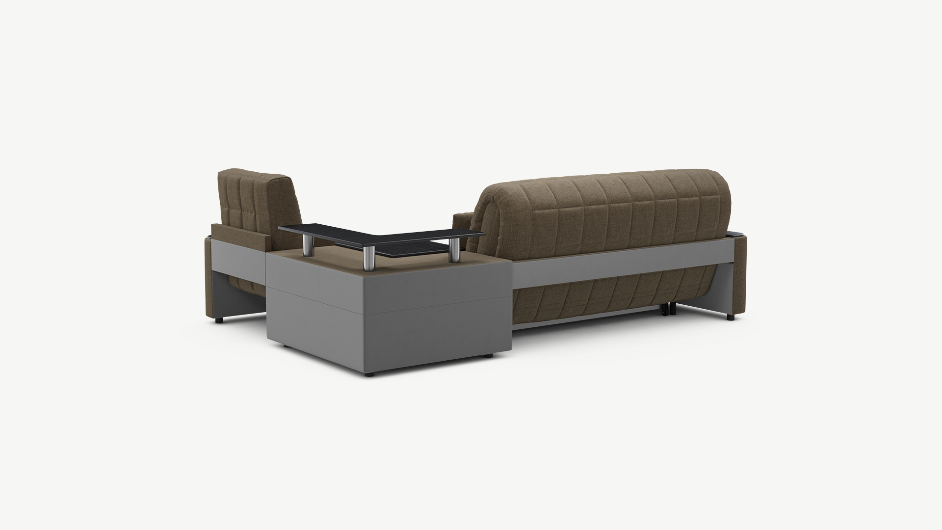 Выбирая угловой диван со столиком, Вы сможете проводить время с максимальным комфортом, многократно повысив функциональность дивана. Все дело в том, что под столешницей модуля расположена вместительная емкость для хранения. Кроме того, поверхность столика — идеальное пространство для чаепития в приятной компании, а также место для множества актуальных мелочей — от ноутбука до косметики.
