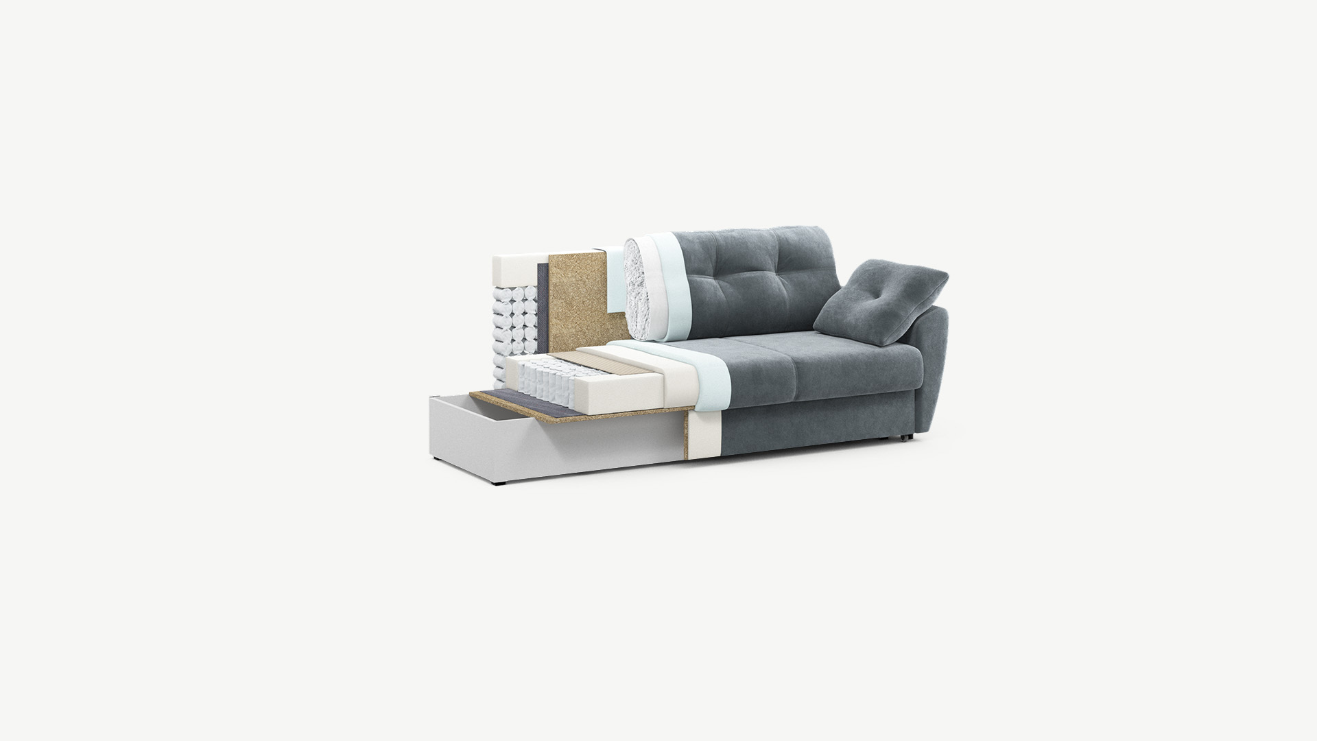 Фактура обивочного материала подбирается дизайнерами с учетом технологических и стилевых особенностей дивана. Профессиональный подход к подбору типа и цвета ткани позволяет находить наиболее удачное решение для каждого Дизайна.