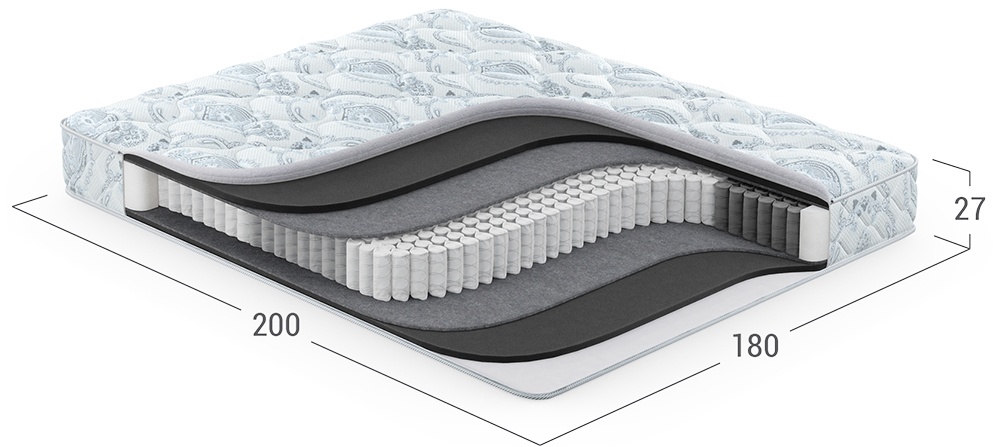 Матрас, в основу которого положен независимый пружинный блок (НПБ). Обратите внимание: чем большее количество пружин приходится на спальное место, тем точнее оказывается поддержка спины, а значит более комфортным становится матрас и Ваш сон.