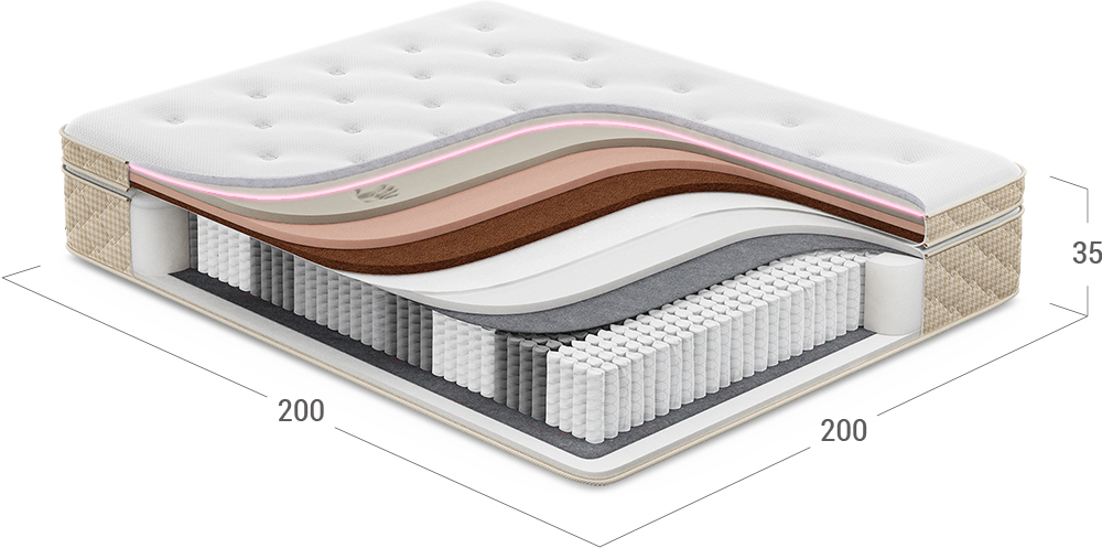Обеспечивает упругую поддержку тела, воздействуя как множество микропружин, снимает лишнюю нагрузку с мышц и помогает расслабиться.