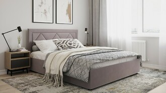 Фактура обивочного материала подбирается дизайнерами с учетом технологических и стилевых особенностей кровати.