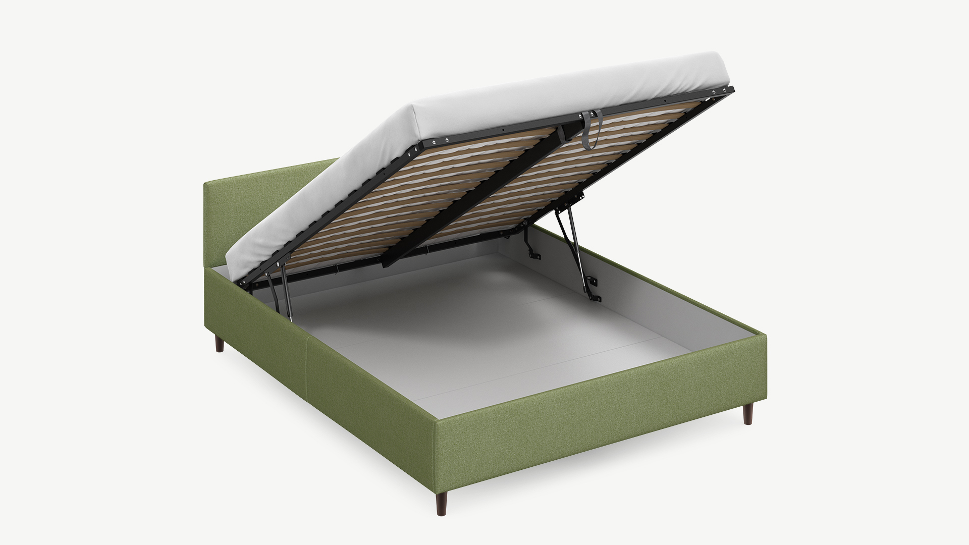 • Скрытая под основанием вместительная емкость без внутренних перегородок позволяет использовать всю площадь подкроватного пространства для хранения вещей.