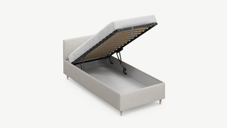 • Скрытая под основанием вместительная емкость без внутренних перегородок позволяет использовать всю площадь подкроватного пространства для хранения вещей.