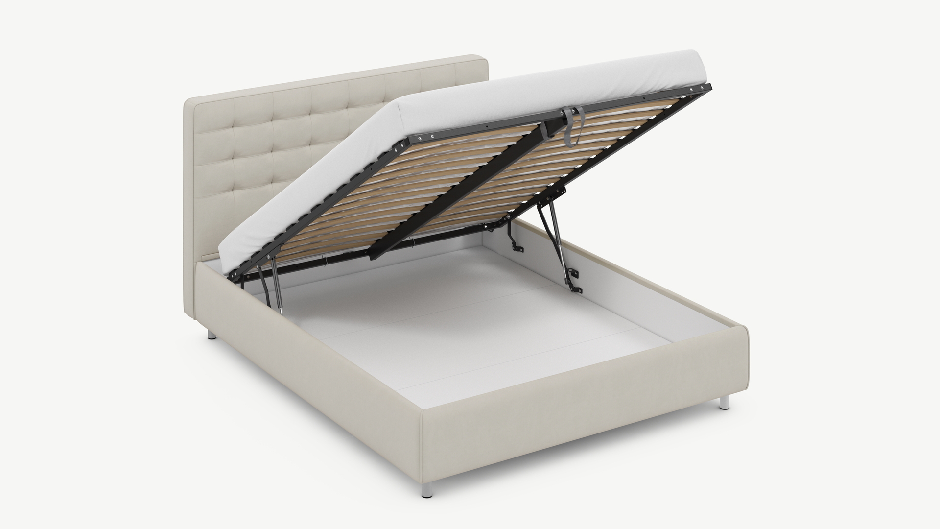 • Скрытая под основанием вместительная емкость без внутренних перегородок позволяет использовать всю площадь подкроватного пространства для хранения вещей.