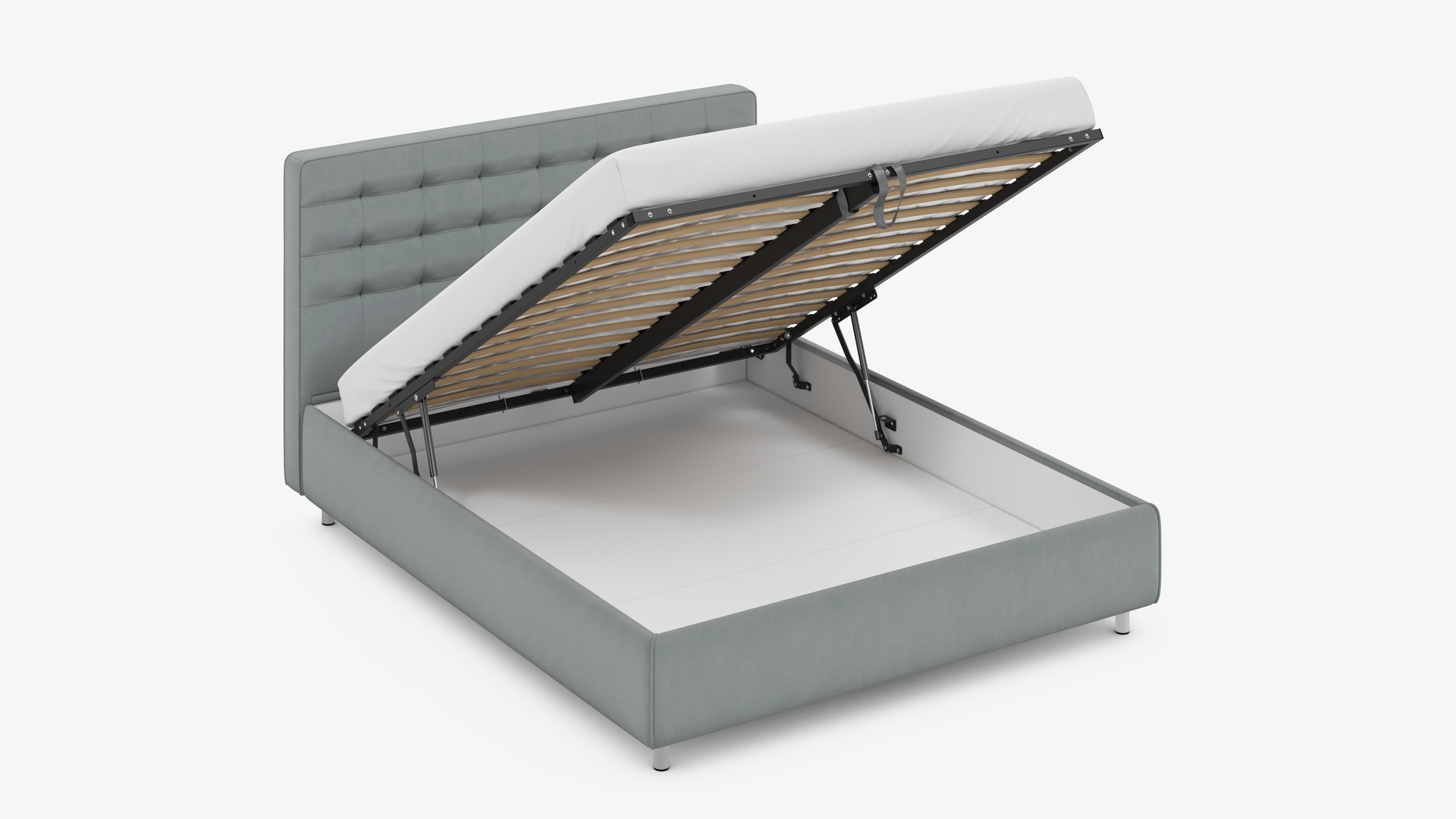 - Скрытая под основанием вместительная емкость без внутренних перегородок позволяет использовать всю площадь подкроватного пространства для хранения вещей.