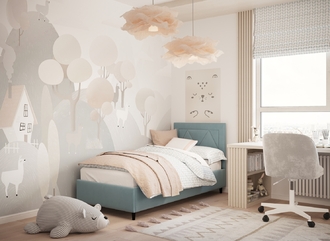 Фактура обивочного материала подбирается дизайнерами с учетом технологических и стилевых особенностей кровати.