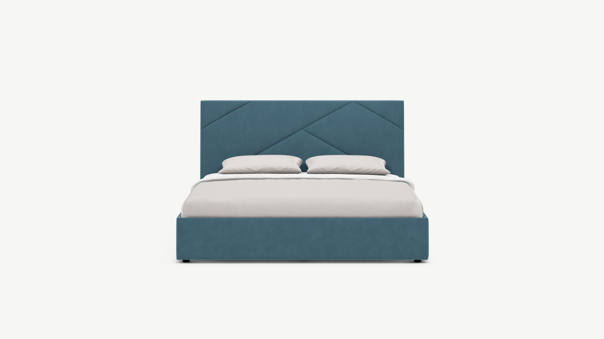 MOON FAMILY 1257 привлекает внимание оригинальным исполнением: широкие полосы ткани эффектно пересекают периметр изголовья, создавая на нем графический орнамент. Элегантным и практичным акцентом служат скрытые карманы, расположенные по его углам. Лаконичные формы объемных царг создают единый гармоничный образ и фокусируют внимание на центральном текстурном элементе кровати.