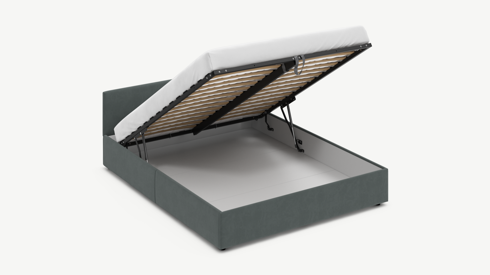 • Скрытая под основанием вместительная емкость без внутренних перегородок позволяет использовать всю площадь подкроватного пространства для хранения вещей.