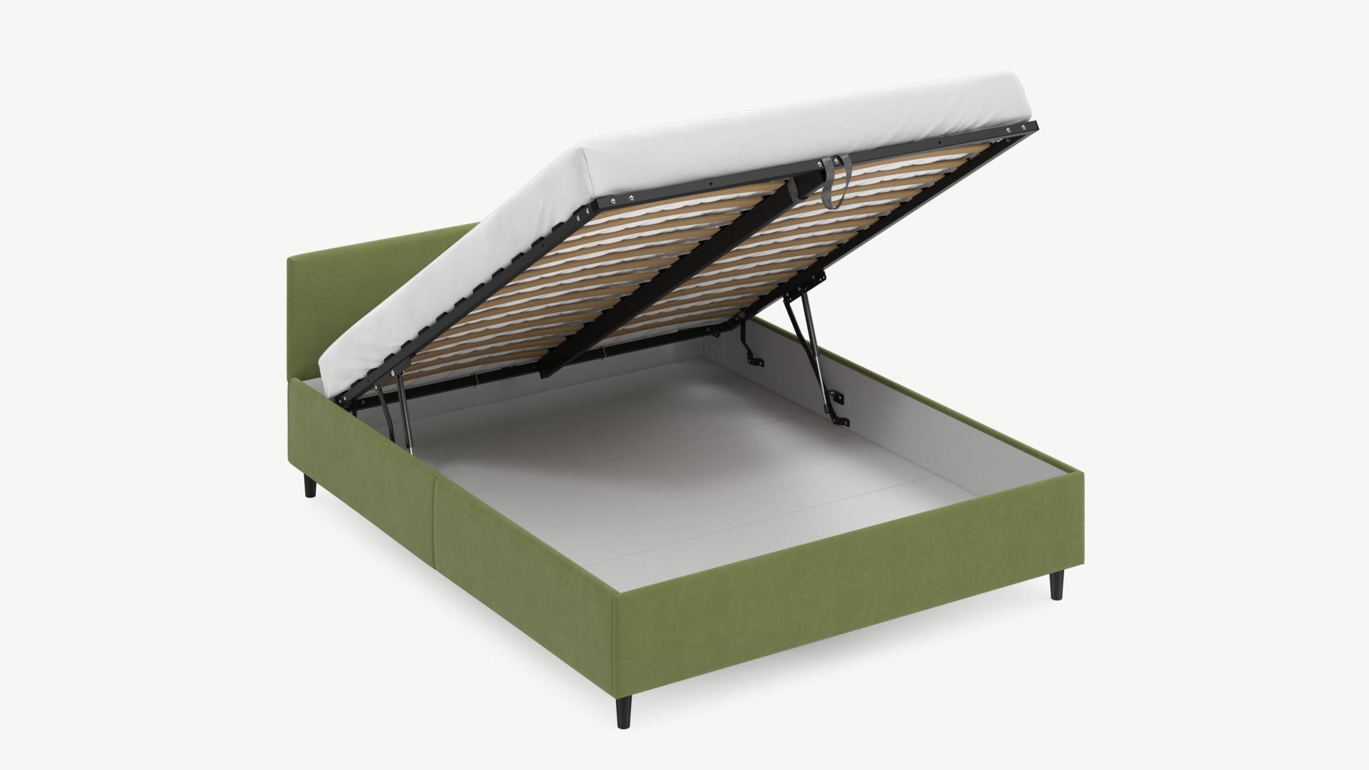 • Скрытая под основанием вместительная емкость без внутренних перегородок позволяет использовать всю площадь подкроватного пространства для хранения вещей.
