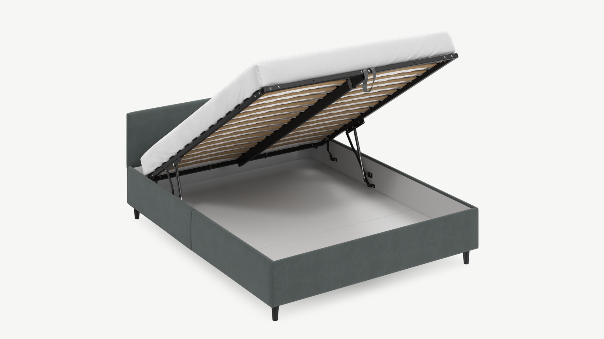 • Скрытая под основанием вместительная емкость без внутренних перегородок позволяет использовать всю площадь подкроватного пространства для хранения вещей.