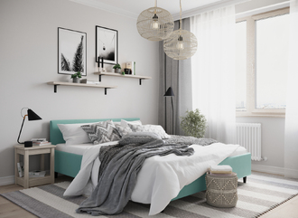 Создать гармоничный интерьер и завершить образ спальни помогут дополнительные аксессуары, например: тумбы, банкетки, подушки.