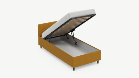 Вместительная емкость под кроватью без внутренних перегородок позволяет использовать для хранения вещей 100% пространства.