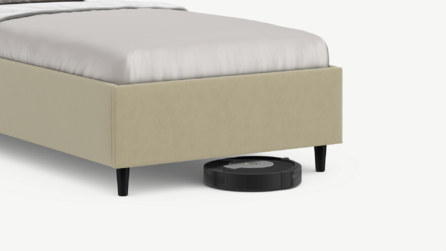 Благодаря высоким опорам под кроватью проходит робот-пылесос и легко проводится влажная уборка, что обеспечивает чистоту и порядок в доме.
