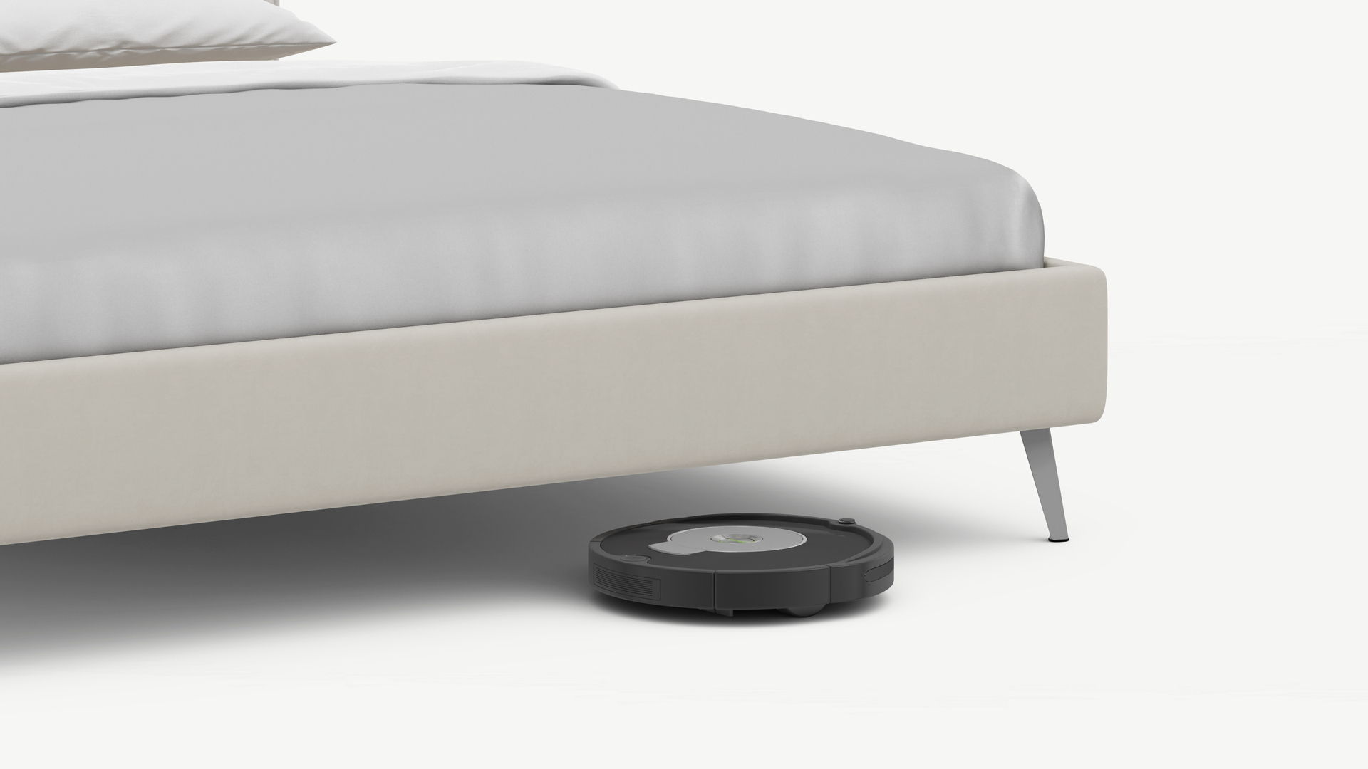 Высокие металлические опоры наклонной формы создают над полом достаточный просвет для движения робота-пылесоса, что помогает поддерживать чистоту и порядок в доме.