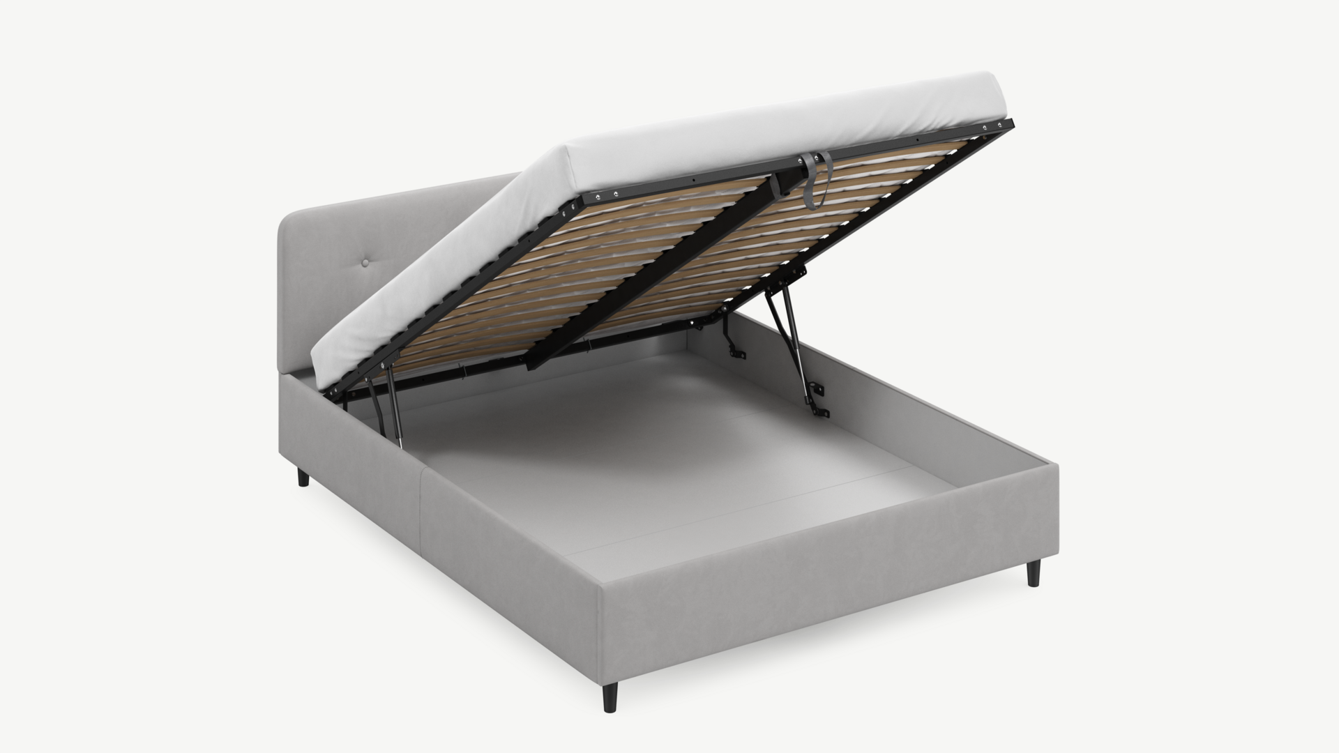 • Скрытая под основанием вместительная емкость без внутренних перегородок позволяет использовать всю площадь подкроватного пространства для хранения вещей.
