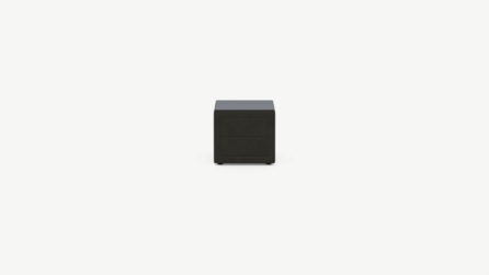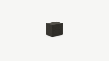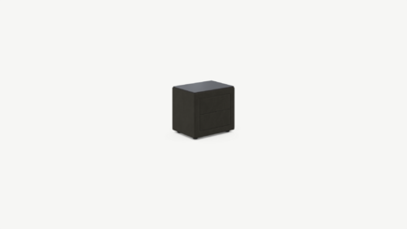 Обратная сторона тумбы, выполненная в обивочной ткани, позволяет ставить ее в центре комнаты и зонировать пространство.