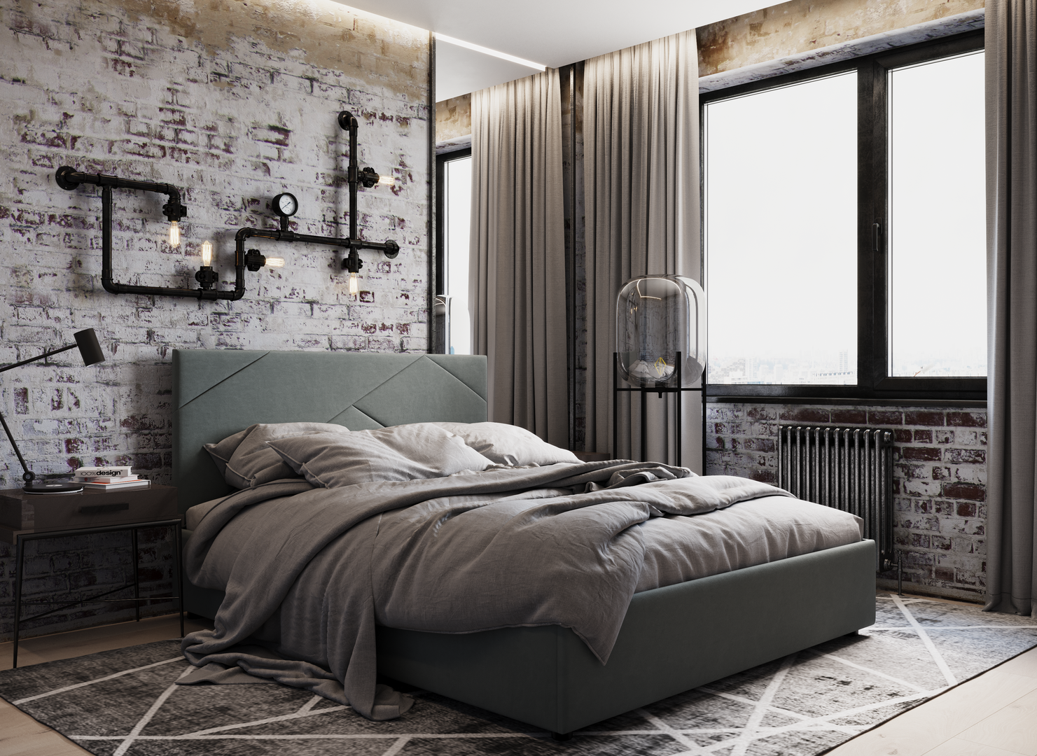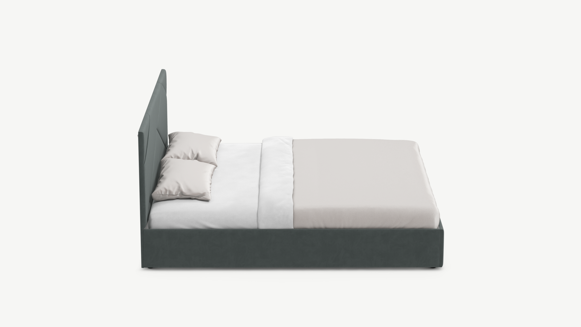 MOON FAMILY 1257 привлекает внимание оригинальным исполнением: широкие полосы ткани эффектно пересекают периметр изголовья, создавая на нем графический орнамент. Элегантным и практичным акцентом служат скрытые карманы, расположенные по его углам. Лаконичные формы объемных царг создают единый гармоничный образ и фокусируют внимание на центральном текстурном элементе кровати.