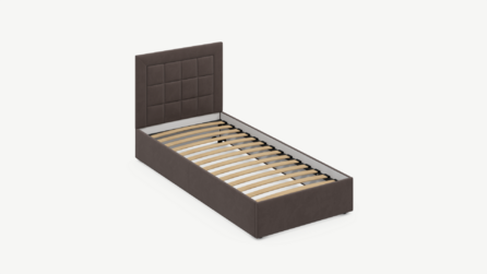 Изголовье декорировано рельефным рисунком стежки в крупный квадрат, получившим особую фактуру за счет глубины шва.