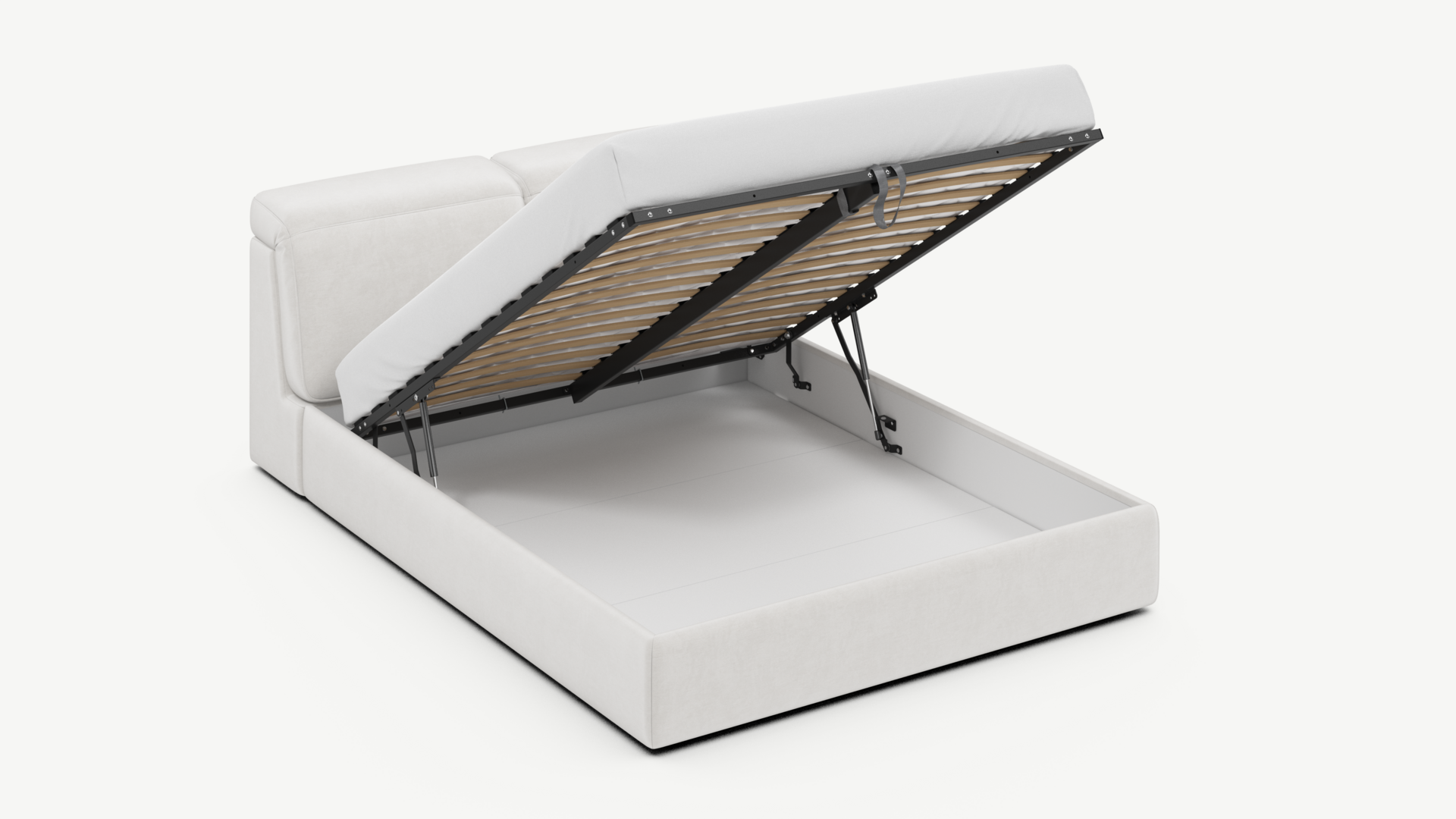 • Скрытая под основанием вместительная емкость без внутренних перегородок позволяет использовать всю площадь подкроватного пространства для хранения вещей.