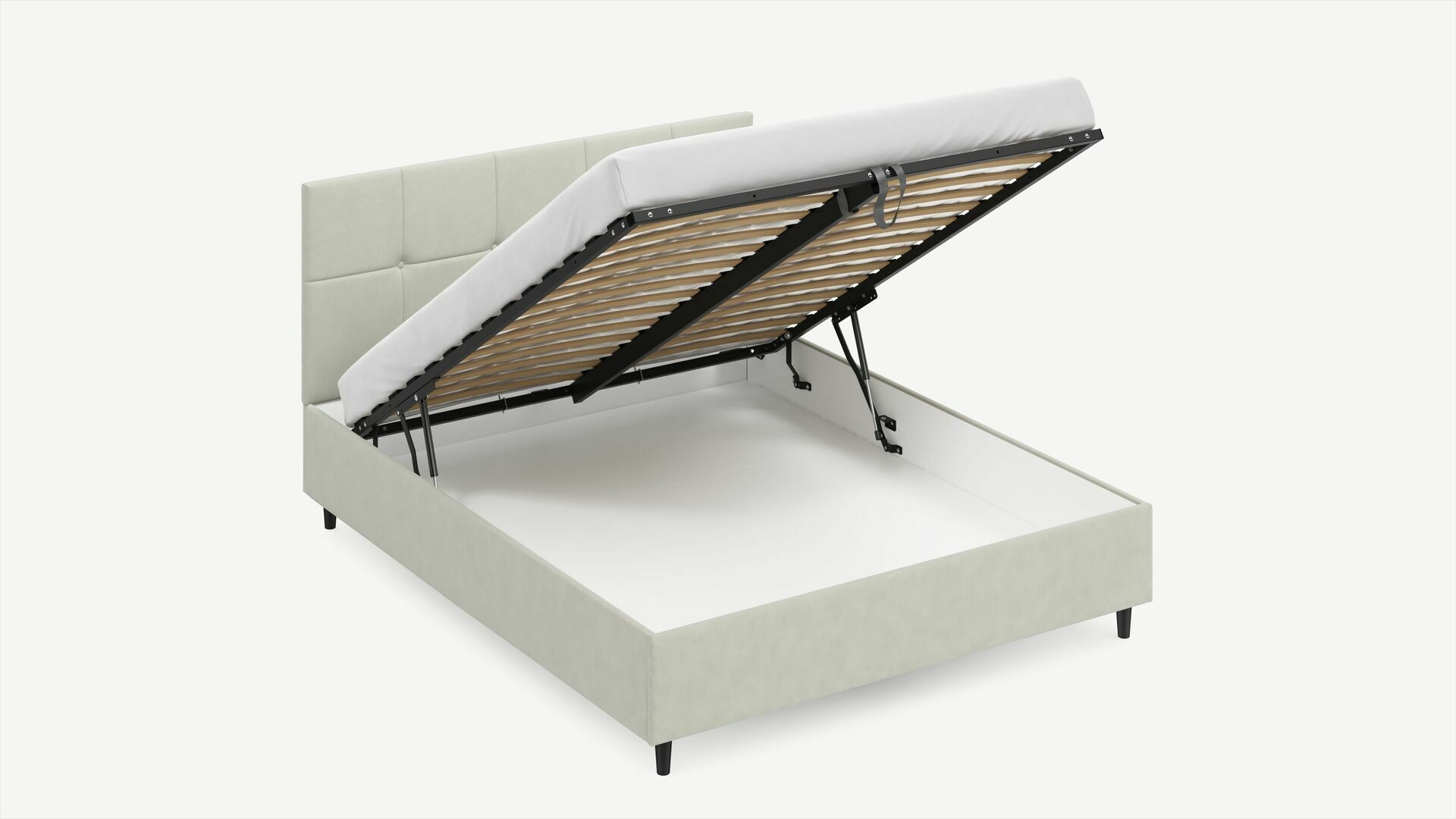 • Скрытая под основанием вместительная емкость без внутренних перегородок позволяет использовать всю площадь подкроватного пространства для хранения вещей.