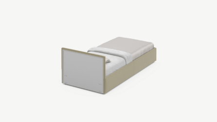 Фактура обивочного материала подбирается дизайнерами MOON с учетом технологических и стилевых особенностей кровати.