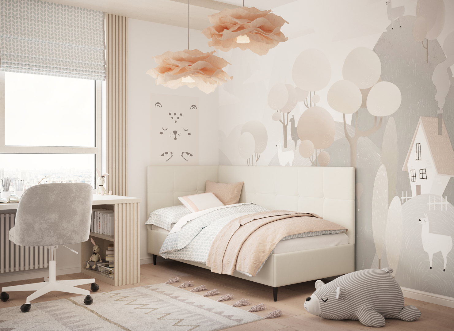 MOON FAMILY 1261 объединяет функциональность и стиль, создавая гармоничное пространство для отдыха и творчества. Кровать доступна в левостороннем и правостороннем исполнении, что позволяет легко адаптировать ее под любые интерьерные особенности.