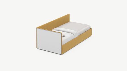 MOON FAMILY 1250 объединяет функциональность и стиль, создавая гармоничное пространство для отдыха и творчества. Кровать доступна в левостороннем и правостороннем исполнении, что позволяет легко адаптировать ее под любые интерьерные особенности.