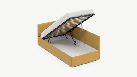 • Скрытая под основанием вместительная емкость без внутренних перегородок позволяет использовать всю площадь подкроватного пространства для хранения вещей.