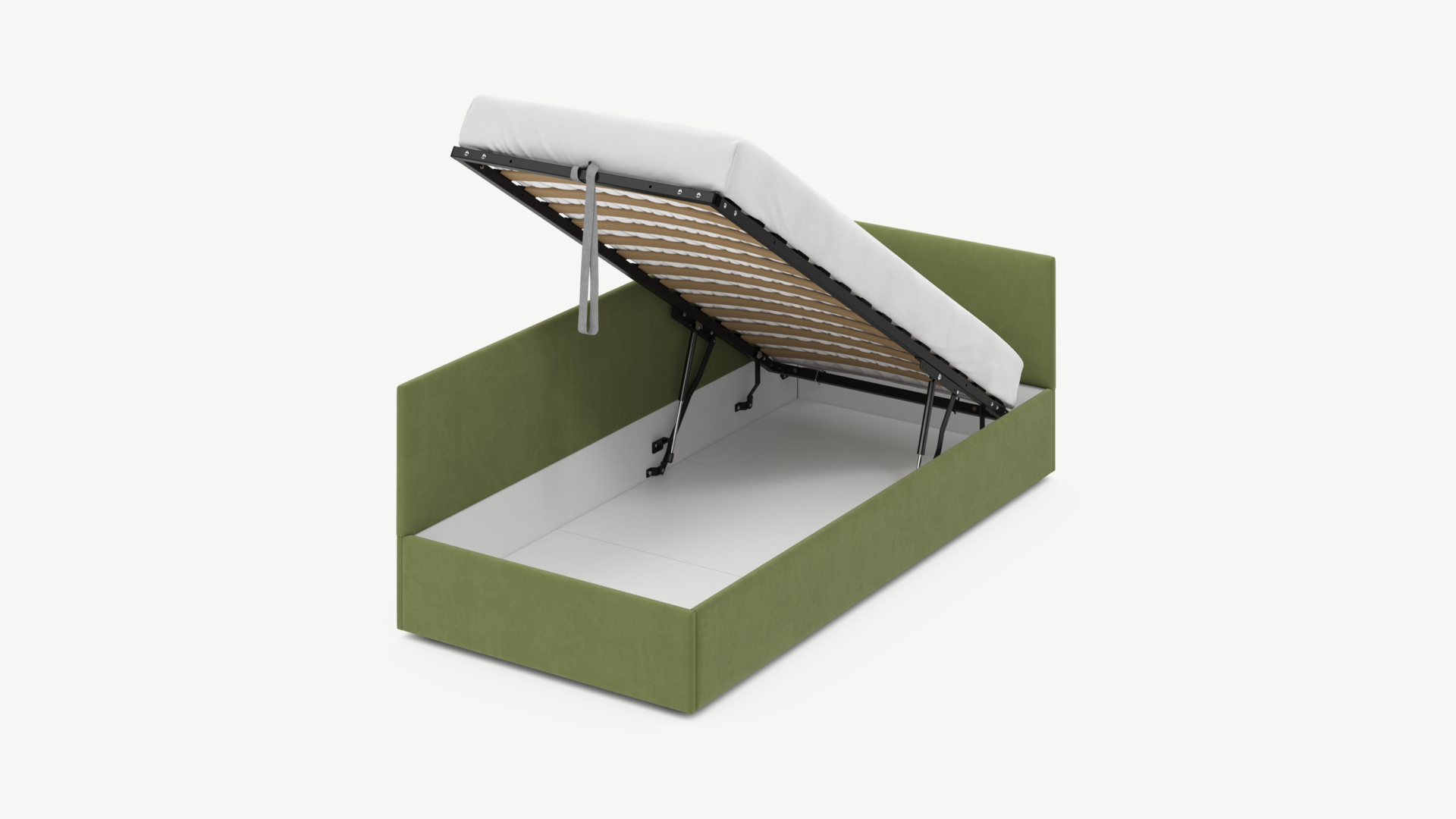 • Регулируемый подъемный механизм имеет два положения установки газовых амортизаторов в зависимости от веса матраса. Это дает возможность оптимально подстраивать угол подъема основания, а также плавно и бесшумно поднимать и опускать спальное место.