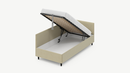 • Скрытая под основанием вместительная емкость без внутренних перегородок позволяет использовать всю площадь подкроватного пространства для хранения вещей.