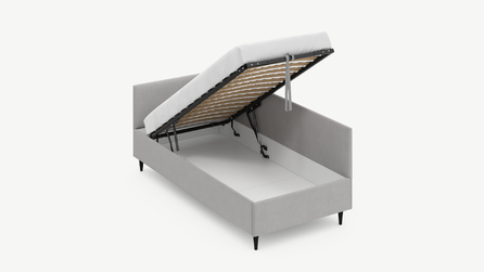 • Скрытая под основанием вместительная емкость без внутренних перегородок позволяет использовать всю площадь подкроватного пространства для хранения вещей.