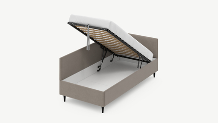 • Скрытая под основанием вместительная емкость без внутренних перегородок позволяет использовать всю площадь подкроватного пространства для хранения вещей.
