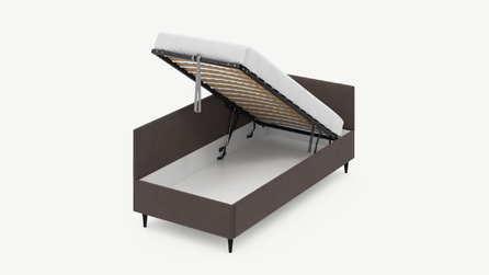 • Скрытая под основанием вместительная емкость без внутренних перегородок позволяет использовать всю площадь подкроватного пространства для хранения вещей.
