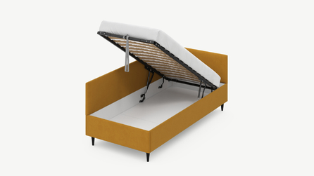 • Скрытая под основанием вместительная емкость без внутренних перегородок позволяет использовать всю площадь подкроватного пространства для хранения вещей.