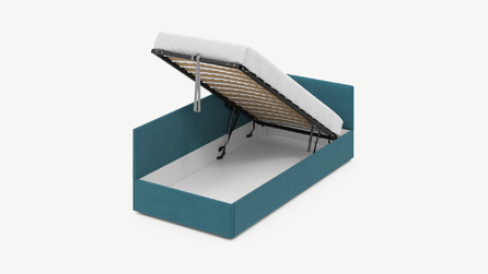 • Скрытая под основанием вместительная емкость без внутренних перегородок позволяет использовать всю площадь подкроватного пространства для хранения вещей.