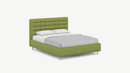 Оформите образ кровати, выбирая обивочный материал, который подчеркнет звучание Вашей спальни и отразит Ваш вкус. Обратите внимание на однотонный гладкий велюр, который усиливает объемную фактуру стежки.