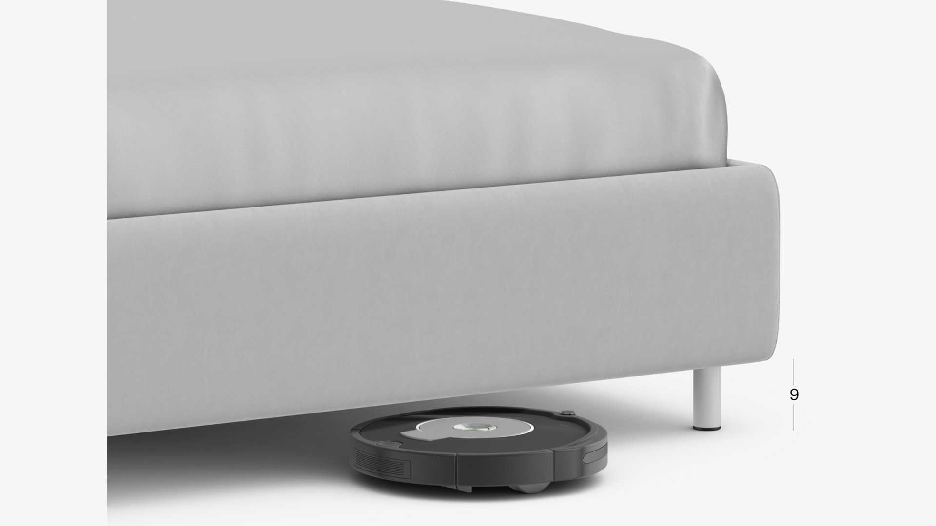 Высокие металлические опоры создают над полом достаточный просвет для движения робота-пылесоса, что помогает поддерживать чистоту и порядок в доме.