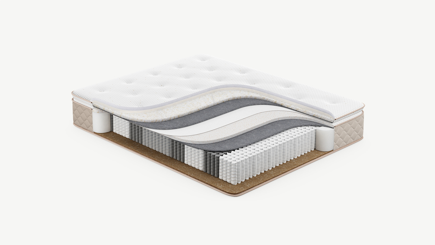 Надежно изолирует комфортные слои от соприкосновения с пружинным блоком и защищает материалы наполнения матраса от износа.